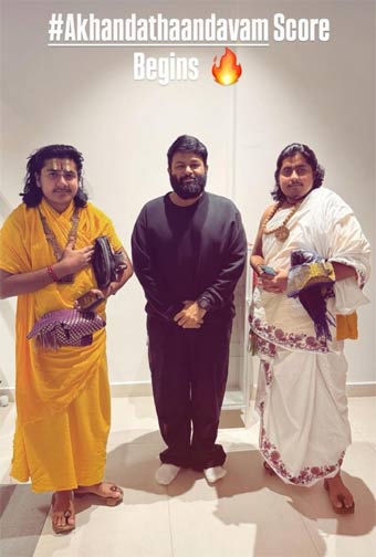 Fans are buzzing with excitement to see Balayya in action once again. Adding to the anticipation, music director Thaman shared a special update today, revealing that the film’s background score has officially begun. In his post, he was seen with Pandit Shravan Mishra and Pandit Atul Mishra, who will lend their voices to Sanskrit slokas for the soundtrack.