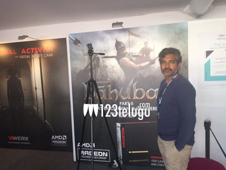 Team Baahubali is truly taking Telugu cinema global with their prestigious movie. The film “Baahubali” is now making a huge splash at Cannes, with its VR (Virtual Reality) themed stall. The film unit has set up a pavilion there to showcase their interests in coming up with a VR experience for Baahubali, as well as to showcase a VR game based on Paranormal Activity.