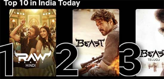 Now, Beast is streaming on Netflix and Sunnext for the last few days. Especially on Netflix, the top three spots of the most-watched are dominated by Beast and its Telugu and Tamil version.