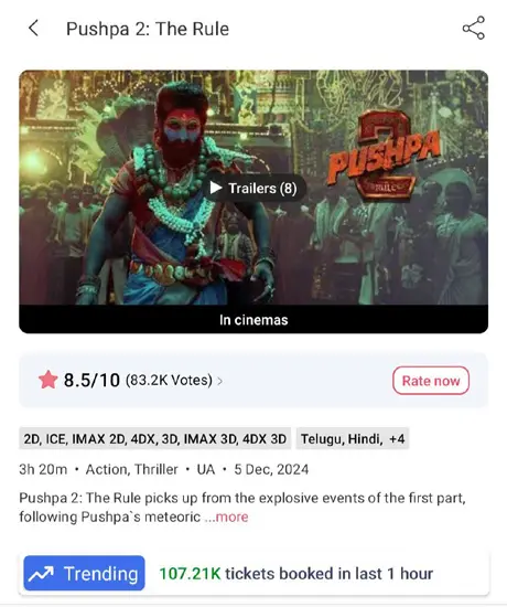 Allu Arjun’s Pushpa 2 currently holds the highest hourly sales, with 107.21K tickets sold in a single hour. While that record still stands, the bookings rampage for Kantara Chapter 1 has cine-goers speculating whether the latest release might surpass it. Only time will tell.