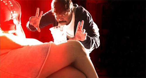 The first look of the film is out now and it showcases the character of RGV in a way which he generally shoots his films in a controversial manner on women. Also seen is a vodka glass on the thighs of a woman. Noted critic Kathi Mahesh is playing the role of an ardent Pawan fan in this film.