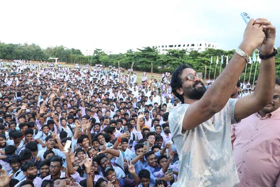 As part of the promotional tour, the movie team visited several colleges in Rajahmundry, Kakinada, Srikakulam and Vizag. Students of Gani Medical College, GIET, Aditya College, Chaitanya, Avanti and AITAM received the team in a good manner and made the tour a grand success everywhere. The tour will continue in other places like Anantapur, Kadapa, Bengaluru, Hyderabad, Warangal and Vijayawada.