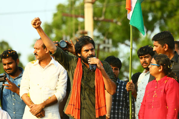 Film star and Janasena leader Pawan Kalyan today announced that he will sit on a hunger strike if the Andhra Pradesh government doesn’t resolve the long-pending issues plaguing the people of Uddanam in Srikakulam. Today, Pawan toured the region as part of his Porata Yatra bus tour.