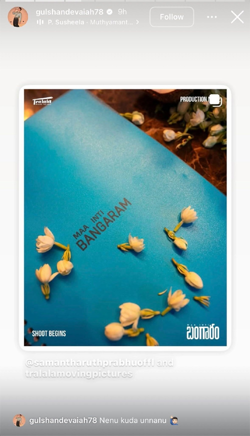 Directed by Nandini Reddy, who earlier teamed up with Samantha for Oh! Baby, the film is currently in its early stages of shooting. More updates about Maa Inti Bangaram are expected to follow soon.