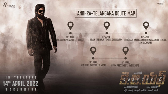 Now, the makers of the movie have announced that the team will do whirlwind promotions in the Telugu states ahead of the release. As per the team, Yash and others will come to Vizag, Tirupathi and Hyderabad to attend the press meets.
