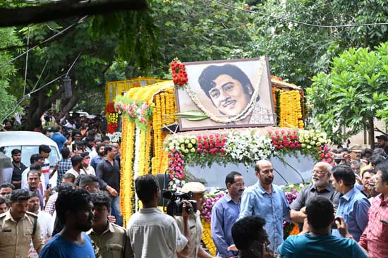The rites were supposed to be held at Maha Prasthanam in Hyderabad but were later shifted to Krishnam Raju’s farmhouse in Moinabad.
