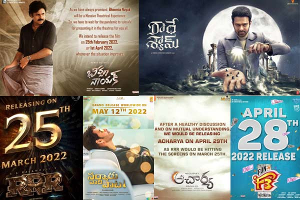 But, today, when the team RRR announced the final release date of the movie, the makers of other biggies like Acharya, Radhe Shyam, Bheemla Nayak, Sarkaru Vaari Paata and F3 also came up with the updated release dates.