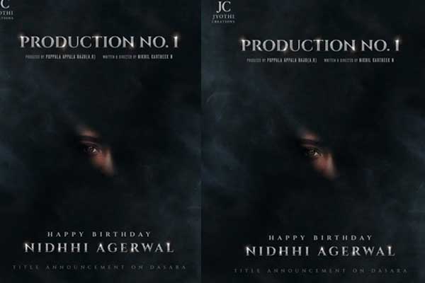 Jyothi Creations announced Nidhhi Agerwal as the female lead in their maiden production. They intrigued fans with the caption: “Her eyes hold secrets, her presence brings chills, but the face remains unseen!”
