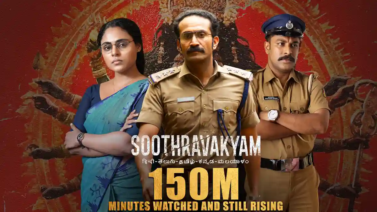 Mollywood suspense thriller Soothravakyam, led by Shine Tom Chacko, struck a chord with the Telugu audiences after its arrival on Amazon Prime Video. The film’s thought-provoking concept and emotional narrative have impressed viewers big time, clocking an impressive 150 million streaming minutes.