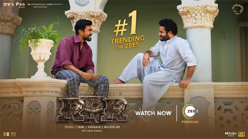 SS Rajamouli’s recent blockbuster RRR, starring Ram Charan and Jr NTR, is currently available to stream on the OTT platform ZEE5 in Telugu, Tamil, Malayalam and Kannada languages.