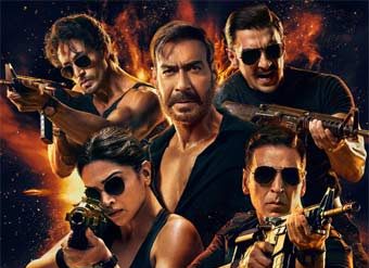 The star-studded cast includes Ajay Devgn, Akshay Kumar, Ranveer Singh, Tiger Shroff, Kareena Kapoor Khan, Deepika Padukone, and Arjun Kapoor, with Salman Khan appearing in a cameo role.