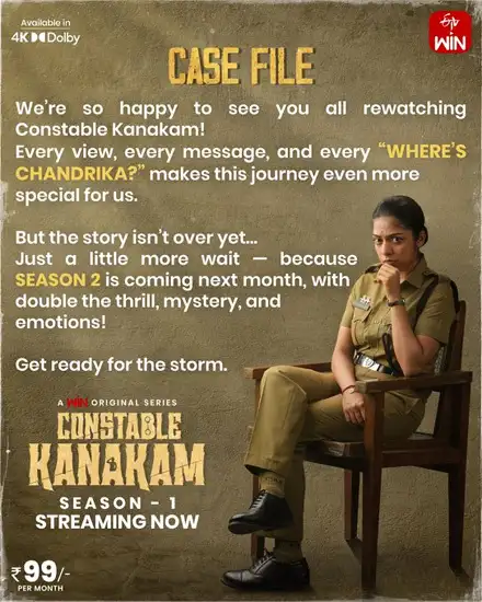 Constable Kanakam is a crime investigative thriller, and the first season’s climax ended on a cliffhanger, hinting at a second season. The makers have now revealed that Constable Kanakam 2 will be released next month, and the official date will be revealed very soon.