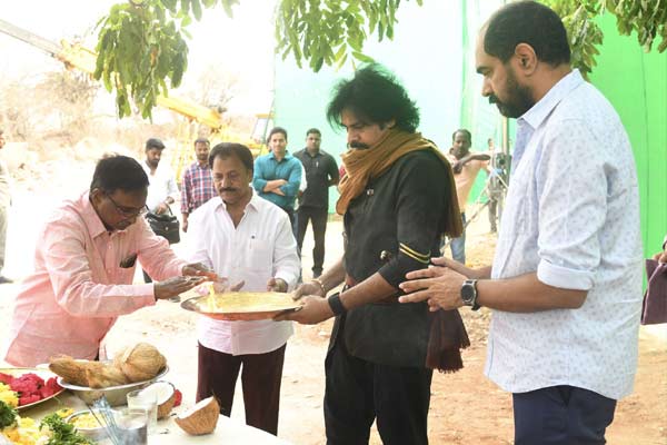 The team has performed a special pooja on the sets as today is Srirama Navami. Pawan Kalyan has conducted the pooja. Producer AM Ratnam and director Krish also joined the pooja.