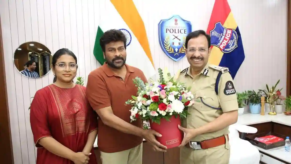 Megastar Chiranjeevi on Saturday met with VC Sajjanar, the newly appointed Hyderabad Police Commissioner. Chiru’s daughter and producer Sushmita Konidela was also present during the courtesy meeting.