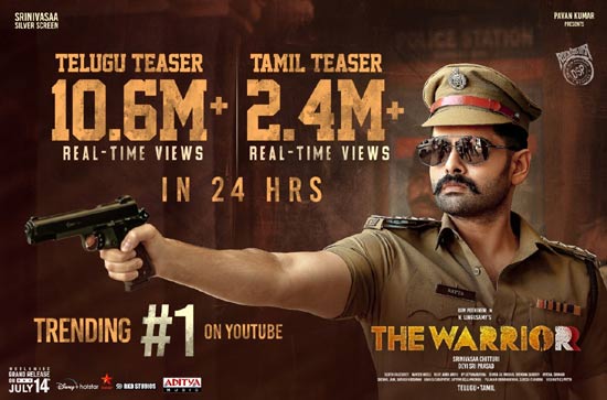 The latest info is that the Telugu and Tamil trailers of The Warriorr have received a huge response from audiences. The Telugu trailer has garnered more than 10.6 million views real-time views whereas the Tamil trailer minted 2.4 million views in 24 hours. The trailer is currently trending at No. 1 place on YouTube.