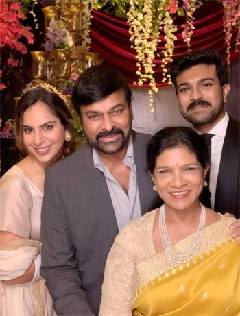 A special wish came from her husband this evening. Ramcharan posted a candid pic and wished her. Megastar Chiranjeevi and Surekha were also seen in the picture along with the couple.
