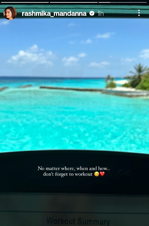 Rashmika took to her Instagram story today and posted an important advice for one and all. She posted a picture and wrote, “no matter where, when and how… don’t forget to workout,” stressing the importance of physical health.