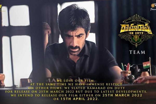 As many Tollywood biggies announced their latest release date, team Ramarao On Duty wanted to make a way for them. So, the makers have announced that the movie might be postponed to April 15, 2022.