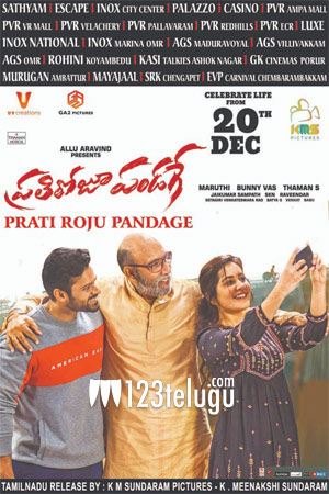 Sai Teja’s new film, Prati Roju Pandaage is all set to hit the screens on December 20th. Already the film’s audio and trailer have been well received by the audience and raised the expectations on this Maruthi’s directional venture.