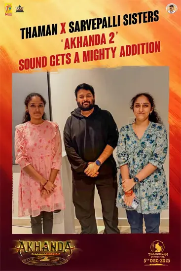 The makers have proudly announced that the renowned Sarvepalli Sisters have joined the team to add a divine touch to the film’s music. Earlier, Thaman revealed that Pandit Shravan Mishra and Pandit Atul Mishra would lend their voices for the Sanskrit slokas featured in the soundtrack.