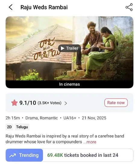Raju Weds Rambai is a small Telugu film with a mostly new cast that opened in cinemas on Friday. The release surprised the trade by drawing solid reviews from both audiences and critics.
