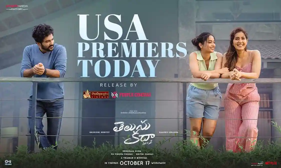 With buzz reaching a fever pitch, and backed by the winning combination of Siddu Jonnalagadda’s craze, People Media Factory’s blockbuster form, and Prathyangira Cinemas’ overseas reach, Telusu Kada is set to make a strong impact overseas as well.