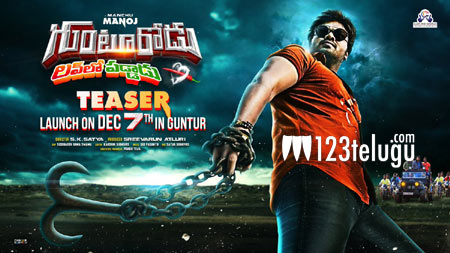 The shooting of Manchu Manoj’s Gunturodu has been completed and the post-production activities have also kick-started. The latest news reveals that the teaser of this film will be launched at a special event in Guntur, Andhra Pradesh on the 7th of December.
