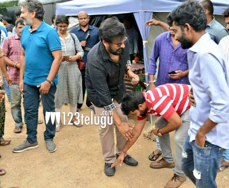 Meanwhile today, the unit was up for a pleasant surprise as star hero Chiranjeevi and Rajamouli visited the sets and watched the proceedings quite closely. Sukumar is directing this film which is based in the 80’s and Ram Charan will be seen as a total villager.