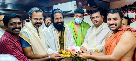 Today, the team KGF 2 has visited Kollur Shree Mookambika and Anegudde Shree Vinayaka temple to seek their divine blessings. Actor Yash, director Prashanth Neel, music director Ravi Basrur and others visited the temple.