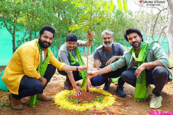 Initiated by TRS MP Santhosh Kumar, the Green India Challenge has become a huge success and many celebrities have participated in it. Today, the RRR trio has planted saplings as part of the challenge and asked fans to continue the chain by planting saplings. Later, MP Santosh has gifted them plants.