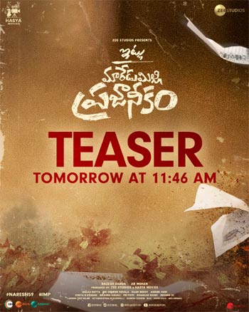 Allari Naresh will be next seen in the movie ‘Itlu Maredumilli Prajaneekam’. The makers of the film released a pre-teaser yesterday and confirmed the teaser release date as June 30. Now the makers have come up with another interesting update. They announced that the teaser will be out at 11:46 AM tomorrow. A poster was released to announce the same.