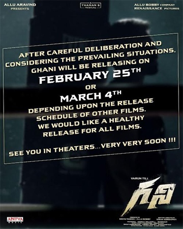 Just like Pawan Kalyan’s Bheemla Nayak, Ghani also sealed a couple of release dates, February 25 or March 4, 2022. The makers will stick to one of these dates based on the then circumstances in the country and based on other movies’ release dates.
