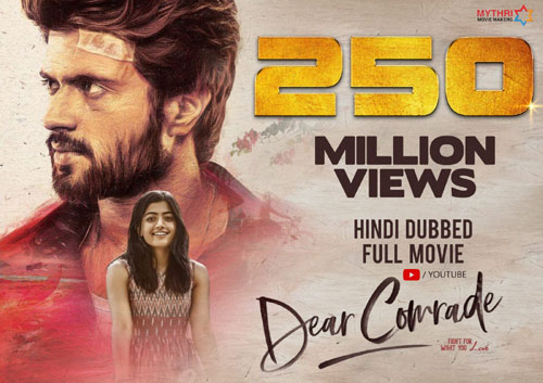 Dear Comrade was dubbed in Hindi and had its YouTube release in January, 2020. Now, the film has surpassed a major milestone by clocking over 250 million views on Goldmines Telefilms channel. The film was directed by Bharat Kamma and produced by Yash Rangineni and Mythri Movie Makers banner.