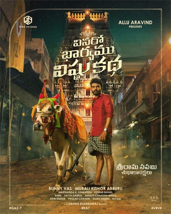 On the occasion of Srirama Navami, the makers of the movie have released the first look poster of the movie. The poster showcases Kiran Abbavaram in ’panchakattu’ attire. He stands beside a well-dressed bull and holds a Shehnai.