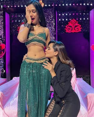 Now, Ashu is back in the news as she is seen kissing yet another Bigg Boss contestant, Ariana Glory’s waistline. Ariana is known for her slick figue and looks like Ashu is loving the sensuous waistline.